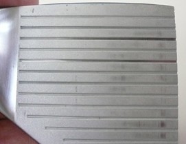 道内で溝加工を行う事ができる工房は、当別町の「CRAFT」と当店だけです。溝加工とは、ウェッジのフェースに刻まれた溝をルールの範囲内で彫り込むことでスピン量が増え、グリーン上でボールがボールがよく止まるようにすることができる技術です。